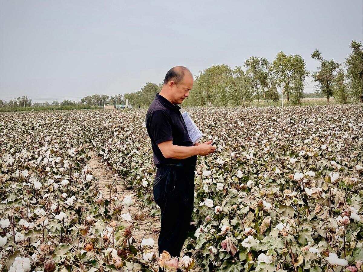 进行文明以评估农业科学研究所实验领域的棉花生长。 。 Lian Wenming, Deputy Secretary of the Party Committee and Deputy Director of the Agricultural Science Institute of the First Division of the Xinjiang Production and Construction Corps, bending to select a cotton boulder that spit the floss and bending it gently: "See, this floss has blossomed, but the key is to look at its ground. Tarim Agricultural Reclamation University (now Tarim University), Lian Wenming came to the Cotton Research Office在第一师的农业科学研究所,并成为棉花育种者。它具有很好的太阳能和热源,棉花气候生长时间干燥。通过底板的底板LM易腐。 “他指出了干净的棉田,”您知道,它们都是今天的高密度种植,但是通风和光线的变速箱良好,几乎没有腐烂的铃铛。”培养高质量的棉花品种,这些品种对应于气候特性和新江生产技术相对应的重要意义,非常重要,可确保最近几年的棉花生产量以及棉花的生产速度。目前,研究的重点是实验田间选择,并根据文明文化的棉花区域选择的高质量的棉花。Ting,棉花应紧密连接到树枝上,叶子应落下干净,不能粘在地板上以影响质量。第三,内部遗传纤维的质量指标必须符合相应的标准。农业科学研究所实验领域的棉花。 (Wang Wenqian的图片)多品种可以在十年内完成的综艺是马拉松。据说,从混合组合到稳定的菌株,再到区域实验,生产示范以及最终通过批准,如果正确良好,则需要十年才能选择和重新定义。多年来,他和他的团队成员在他们不懈的科学研究中种植了十多种类型。他主要参与促销活动的棉花类型,并在南新疆棉花地区种植,从而创造了超过2000万MU的经济利益。他的研究团队持有一本棉花现场增长记录簿。 “ E的表现必须记录每个关键时期的ACH材料,这是最终选举的基础。农业研究最害怕强烈的天气,但他们也期望这样的时刻。这些材料是对未来的希望。鉴于过去几年与我们一起积累的材料。如果他们放弃一半,他们将“无限犯罪”。“他将掌握在唱片书上,“新疆棉花的诞生从一开始就消失了,这是世代斗争的果实。这是年轻人继续与研究的前线作斗争的责任,您不仅应该忍受悲伤。站在农场山脊上的文明的人说:“目前的培育类型不仅应增加棉花农民的收入,而且还应满足公司的满足。而且没有完美的棉花,而且我们应该尝试结合最佳的品质。